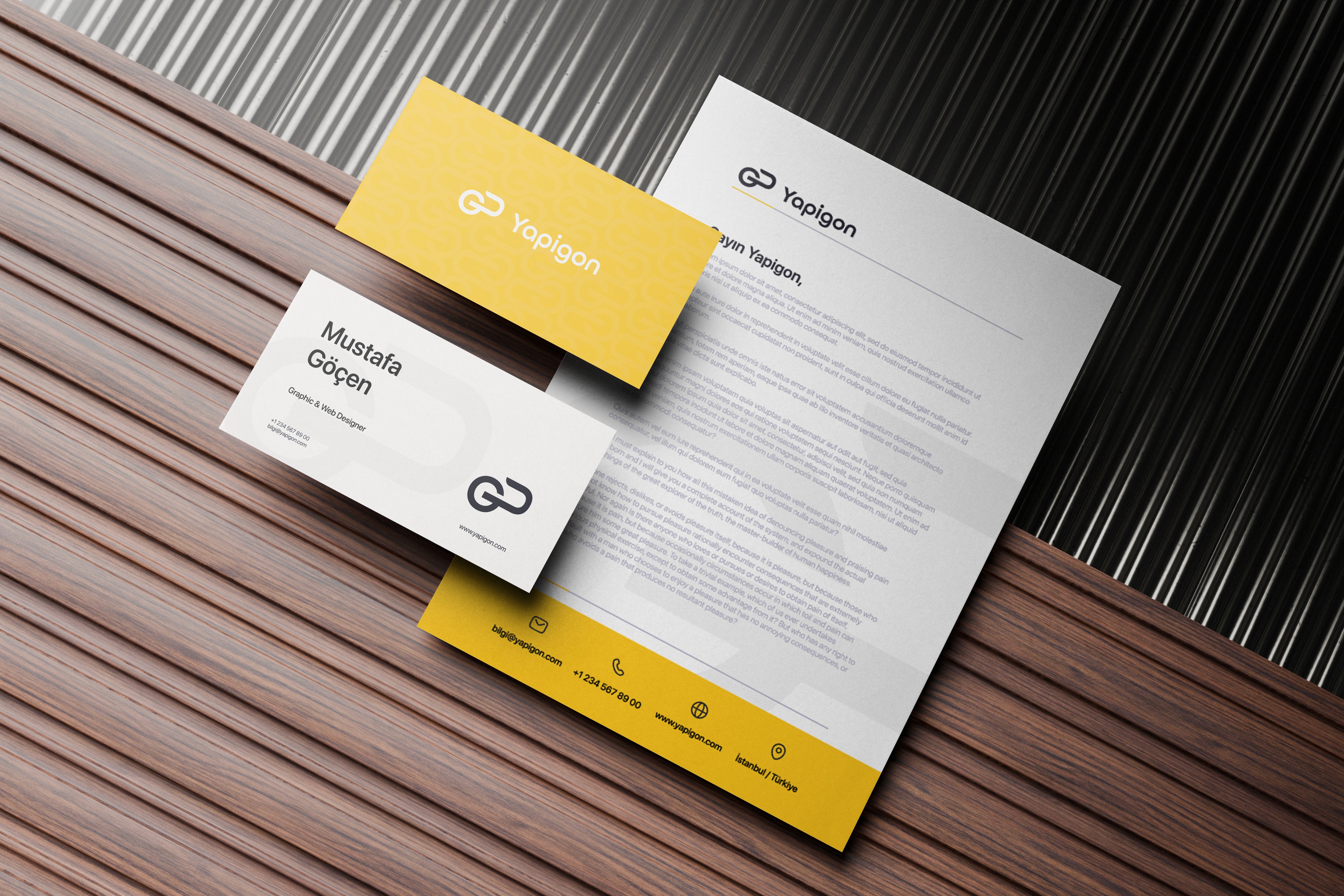 Yapigon için oluşturulan kurumsal kimlik tasarımı, markanın inşaat ve proje geliştirme sektöründeki profesyonel, güven veren ve modern duruşunu güçlendirmek amacıyla tasarlandı. Tüm kimlik unsurları markanın teknik uzmanlığını yansıtır.